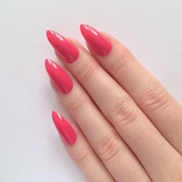 Grapefruit Stiletto nails, Nail designs, Nail art, Nails, Stiletto nails, Acrylic nails, Pointy nails, Fake nails