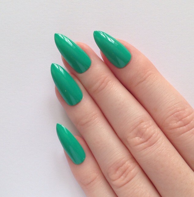Green Stiletto nails, Nail designs, Nail art, Nails, Stiletto nails, Acrylic nails, Pointy nails, Fake nails