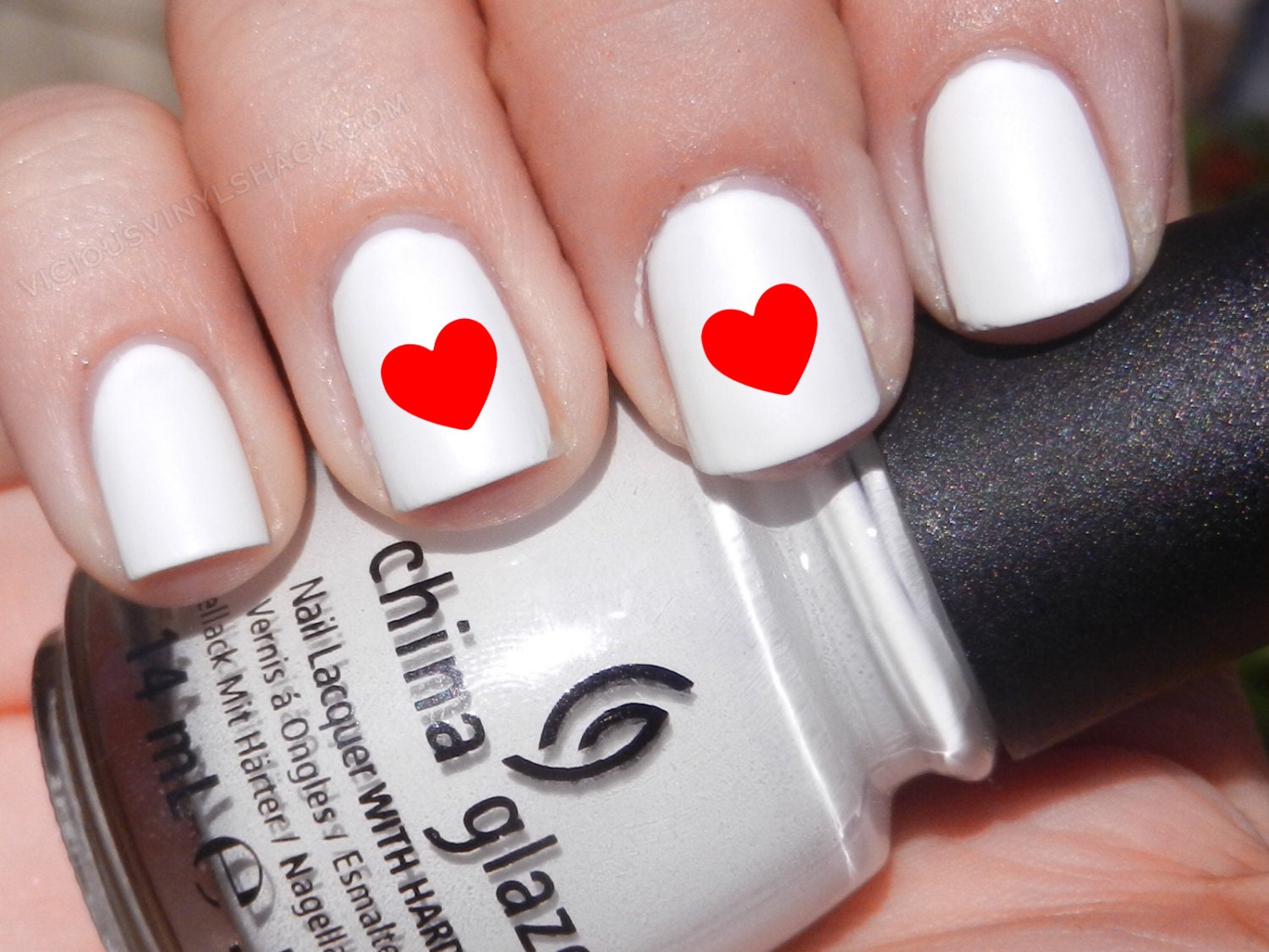 Set of 52 Solid Heart Love Vinyl Nail Decal Stickers (Multiple Colors Available) Fashion Beauty