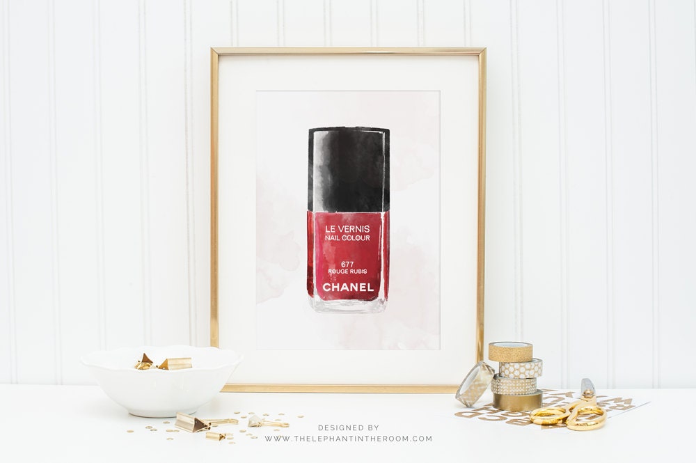 Watercolor illustration - Chanel Rouge Rubis nail polish - wall art
