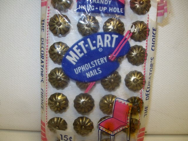 Vintage full package of 30 flower design metal upholstery/thumb tacks nails Met-L-Art brand advertising