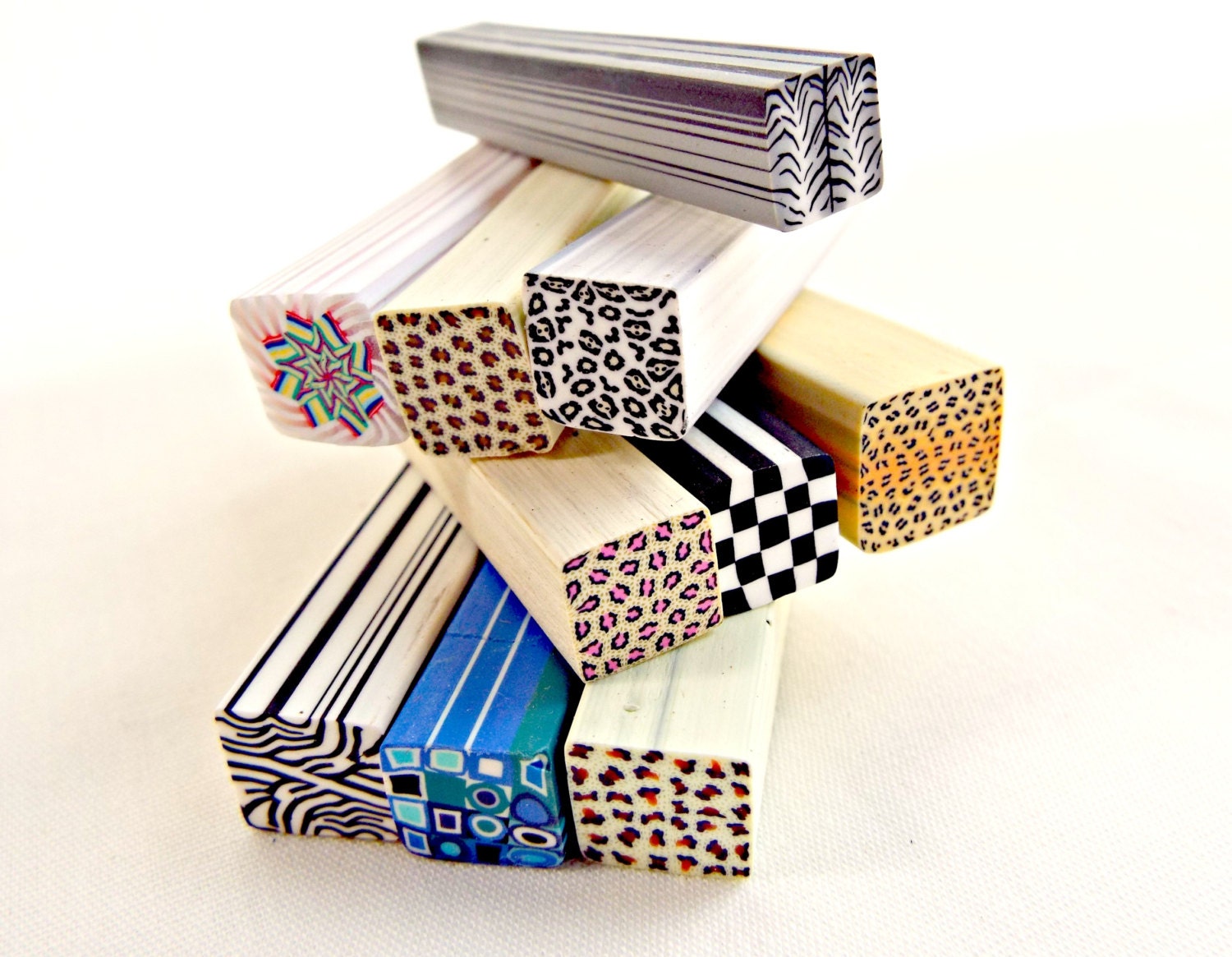 10 Fimo Canes, Assorted Canes, Polymer Clay Canes, Square Canes, Nail Art, Kawaii Canes, Nail Decoration, 10 Pcs Mixed Design