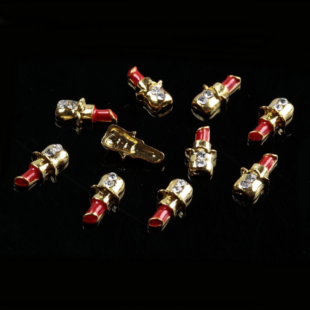 10PCS 3D Big Red Lip /Goden Lipstick Design Rhinestone Alloy Nail Art Decoration DIY Nail Art Decorations