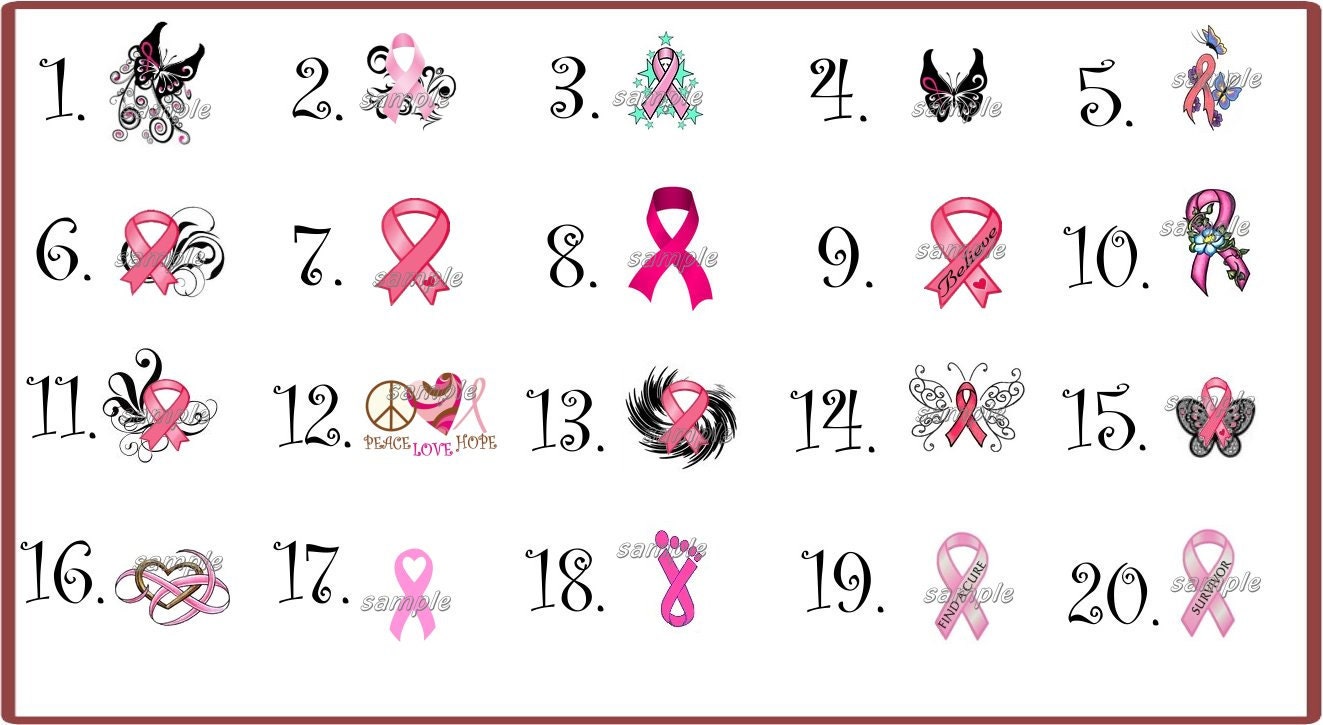 40 Cancer Pink Ribbon Nail Art Designs Decals - Choose your design Free Shipping