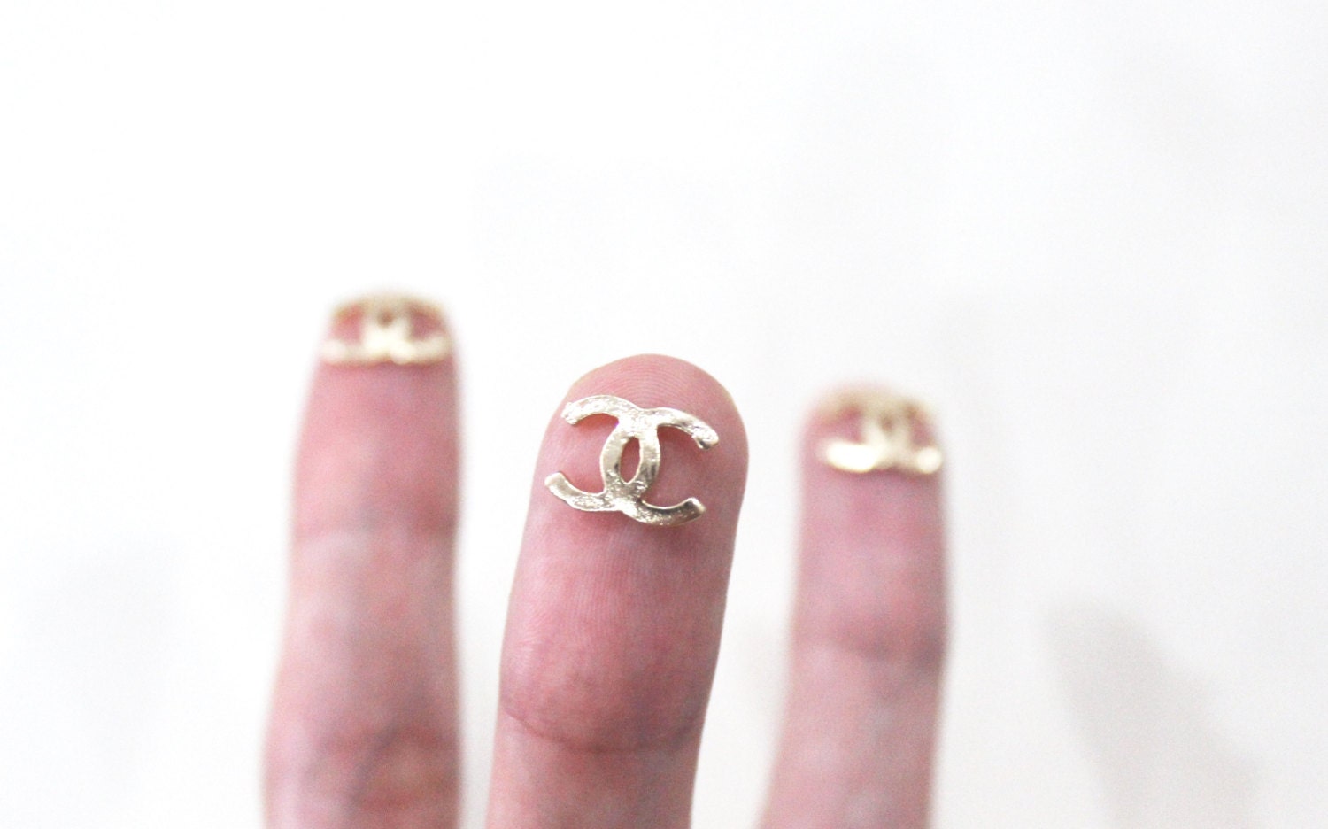 Buy 2 get 1 free. 2pcs Gold Designer C Logo Nail Charm