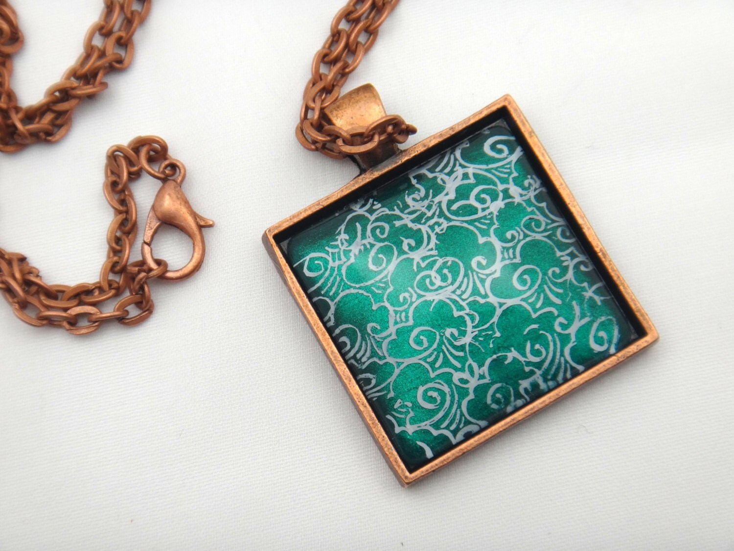 Hand Painted Emerald Cloud Necklace Emerald Necklace Cloud Design Necklace Nail Polish Necklace Emerald Pendant Emerald Jewelry Nickel Free