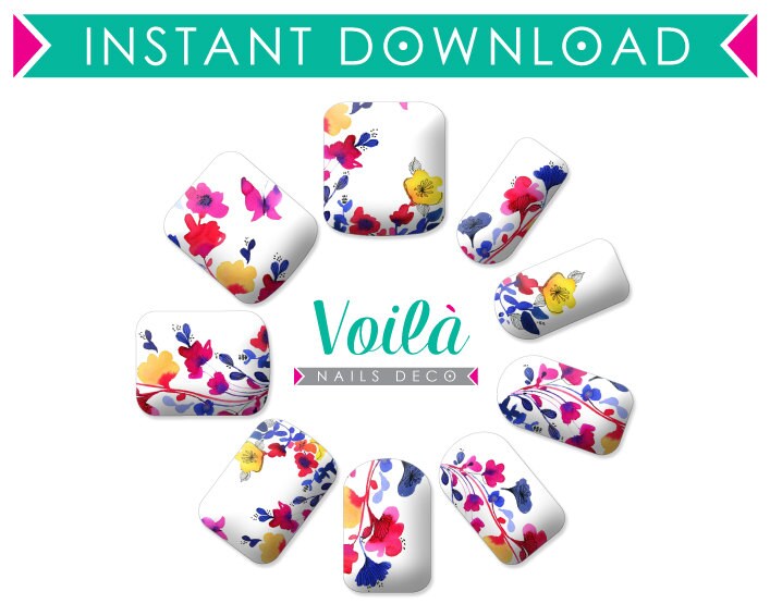 INSTANT DOWNLOAD - Floral Nail Water Decal Design Flower Nail Design Voilanaildeco Nail Art Decal Sticker Wrap - A007