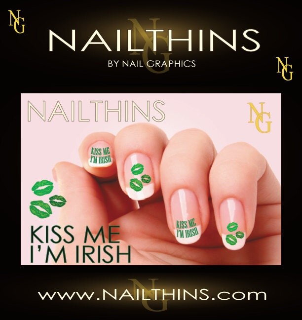 Kiss Me I'm Irish Nail Decal St Patrick Day nail design NAILTHINS