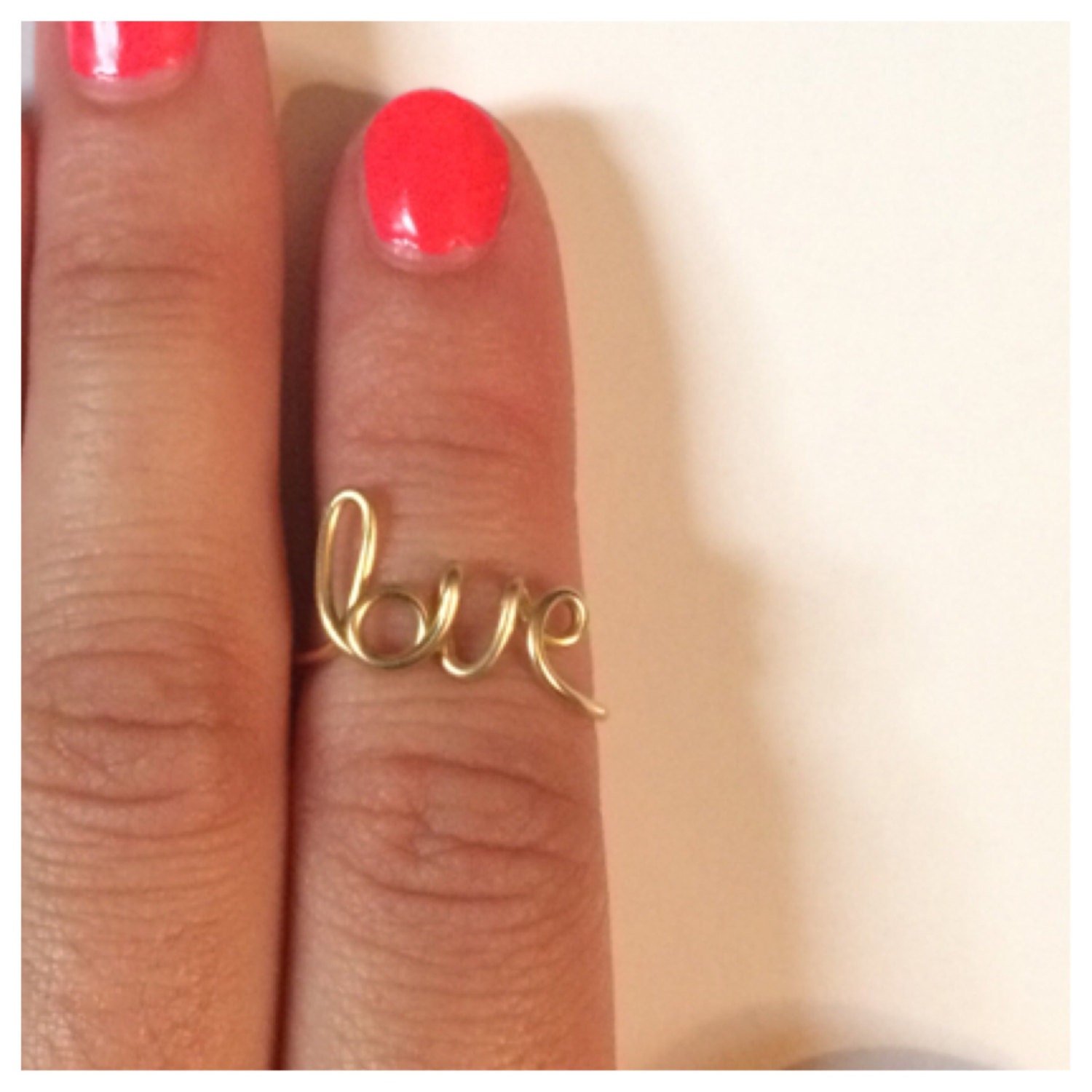 Love Script Midi Ring, Gold Tone, Adjustable Wire Design