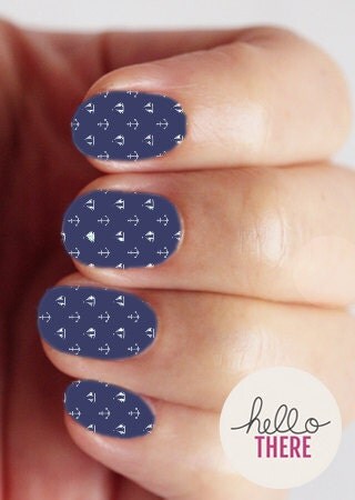 Nail Decals, Waterslide Nail Decals, Nail Art, Full Nail Wrap, Decals, Nail Wrap, Nail Stickers, Navy Nautical, Set of 20 Nail Decals