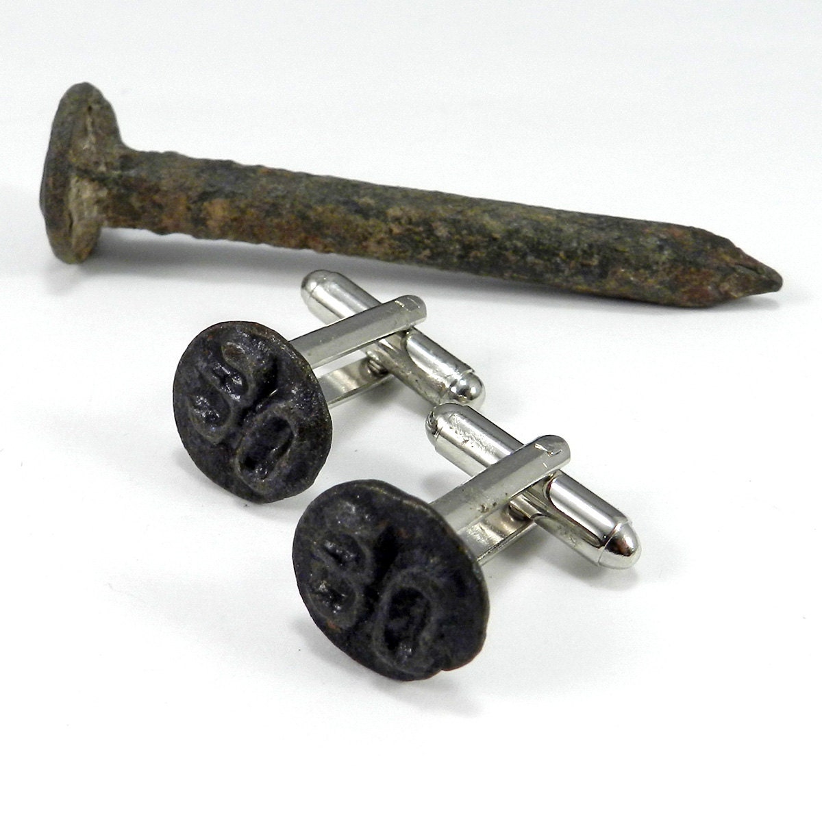 Steampunk Jewelry Cufflinks, Railroad Date Nail Cuff Links - Soldered Antique 1930 Date Nail - Steampunk Jewelry by Compass Rose Design