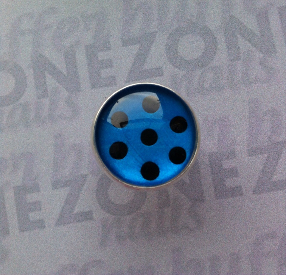 Adjustable Nail Polish Ring, Blue and Black Polka Dot Design