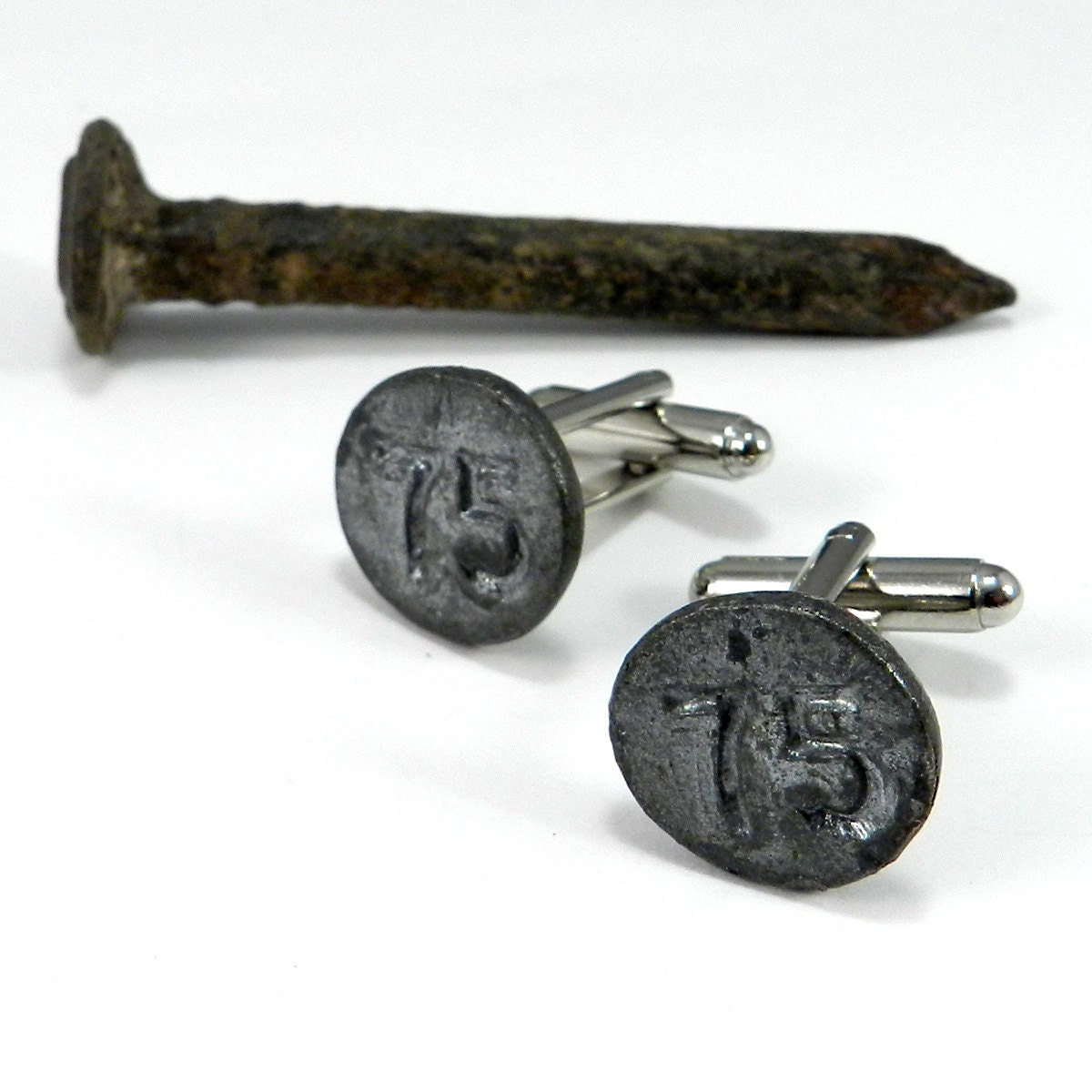 Steampunk Cufflinks, Railroad Date Nail Cuff Links - Soldered Antique 1975 Date Nail - Steampunk Jewelry by Compass Rose Design
