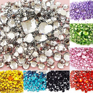 9 Colors Mixed Size/Shape Flat Back Rhinestone 1100PCS 3D Acrylic Flatback Rhinestones DIY Phone case Nail art design deco supplies