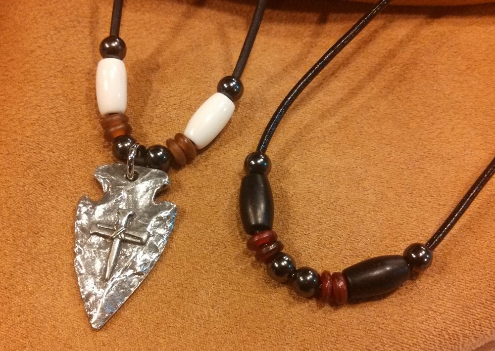 Little D Cross of Nails Arrowhead Hunting Necklace Bone and Horn Beads on a 20" Leather Cord with Nickel Bead Accents
