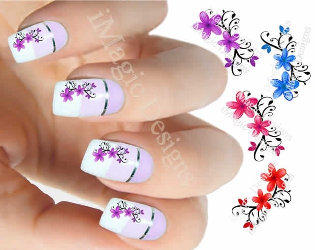 Nail Decals, Water Slide Nail Transfer Stickers, Flower Vine