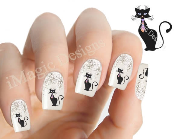 Waterslide Nail Decals, Nail Stickers, Cat With Tie