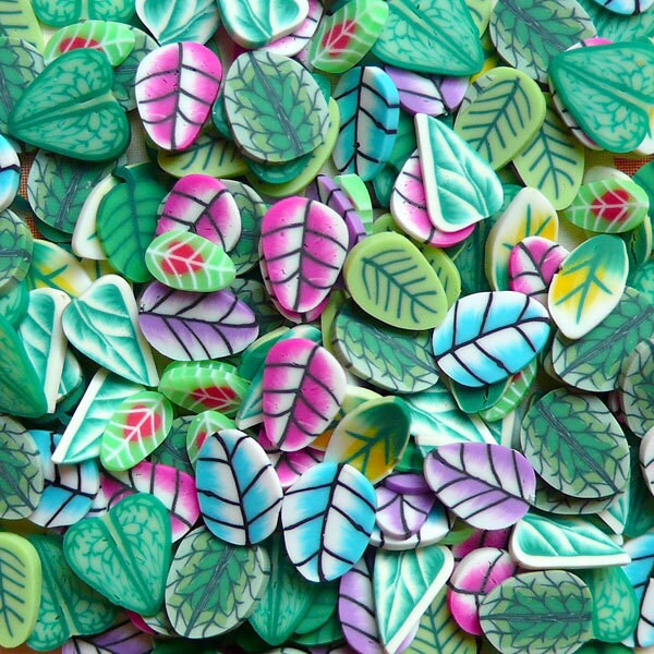 Polymer Clay Cane Leaf Assorted Fimo Cane Slices Mix 10designs Mini Flower Deco Kawaii Fimo Nail Art Decoration (100pcs by random) CMX022