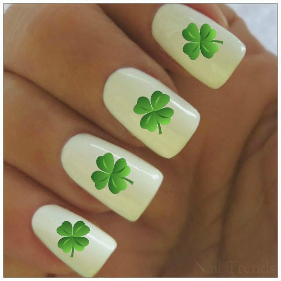 St Patty's Nail Decal 20 Vinyl Adhesive Decals St. Patrick's Day Nail Tattoos Nail Art 4 Leaf Clover Nail Design