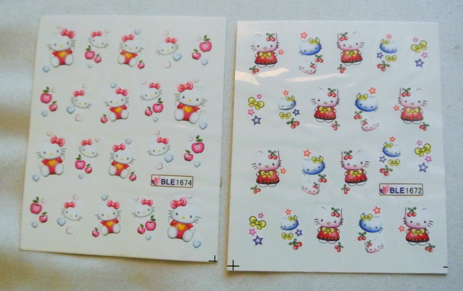 2 sheets of hello kitty sanrio character water transfer nail art, 20 pcs each sheet nail design