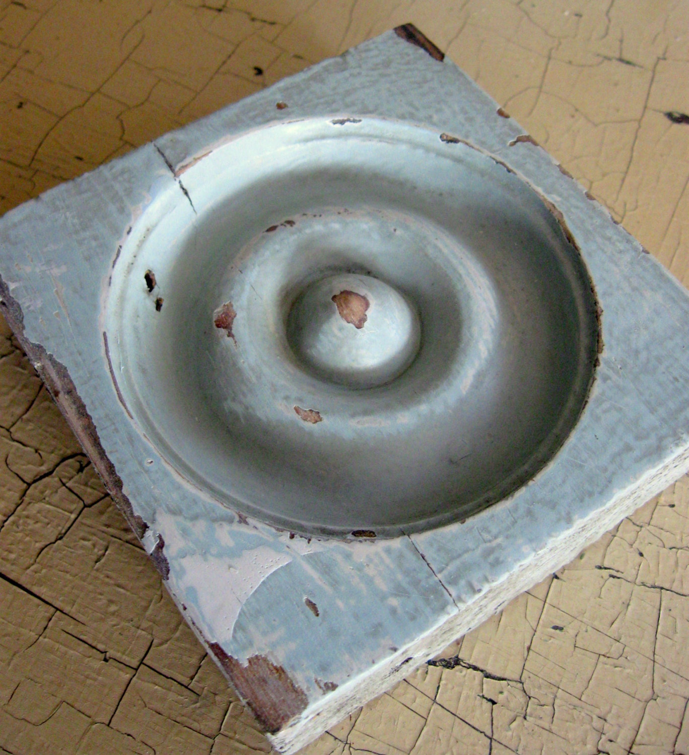 Antique Architectural Door Molding Block with Blue Shabby Chippy Paint