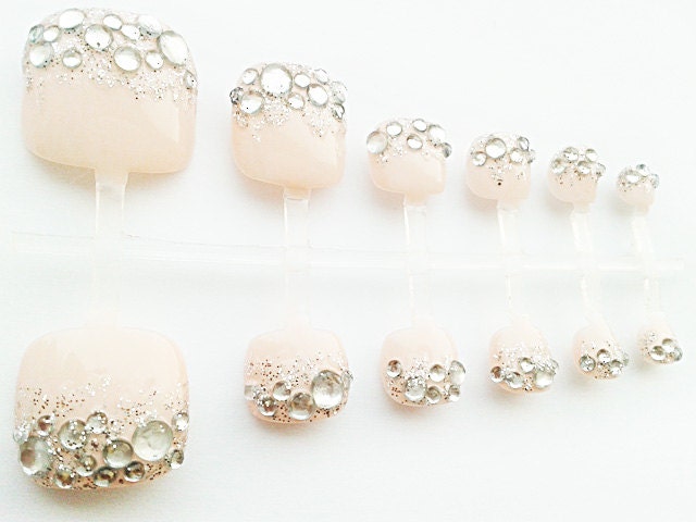 Pale Pink False Toe Nails, Hand Painted Fake Toenails, Handpainted Artificial Toenail Set, Nail Art Design