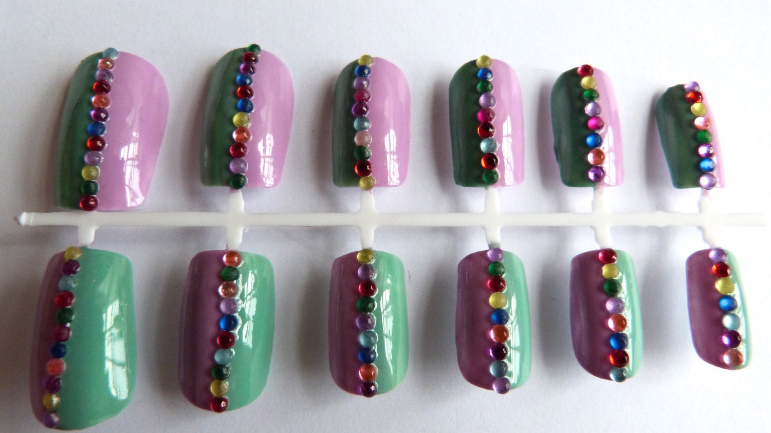 SALE 24 Hand Painted Alternative Gemmed Nails