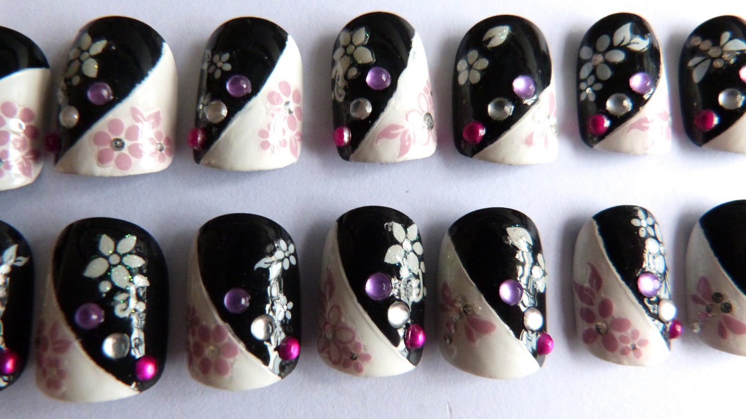 SALE 24 Hand Painted Alternative Gemmed Nails